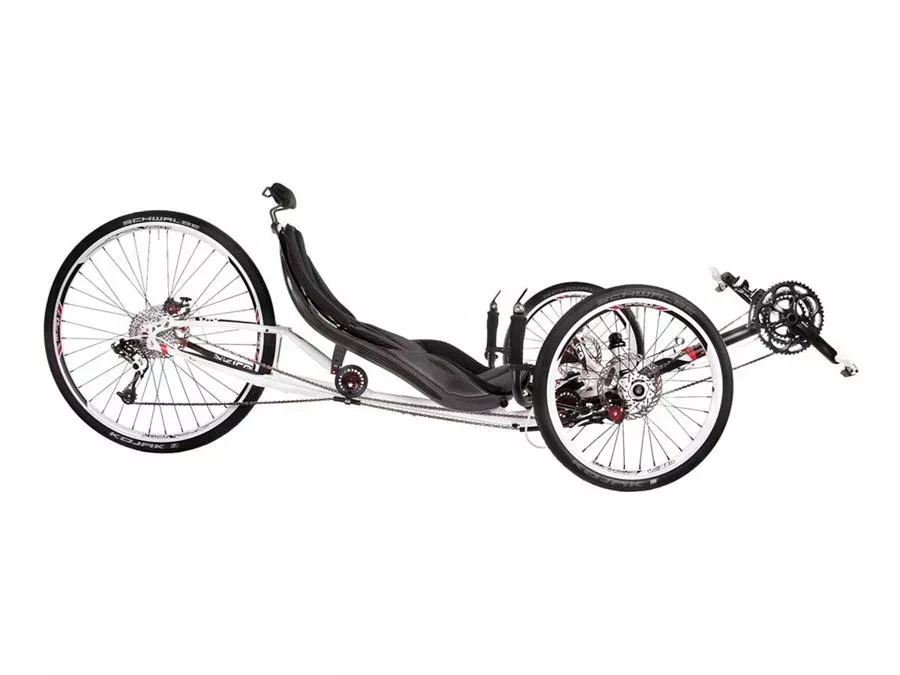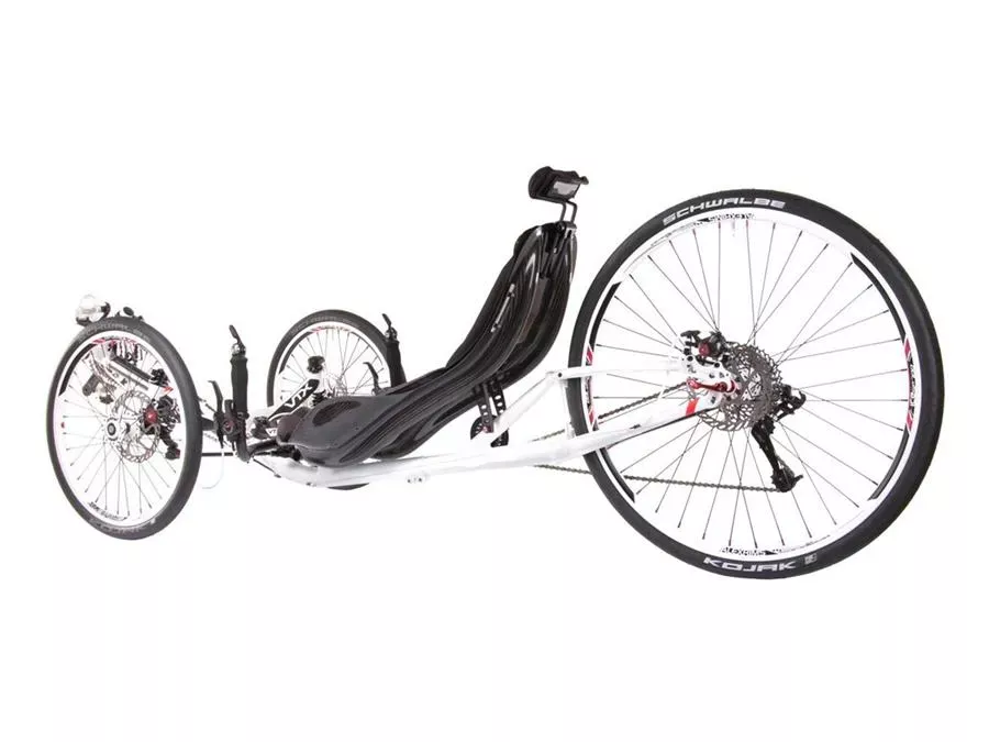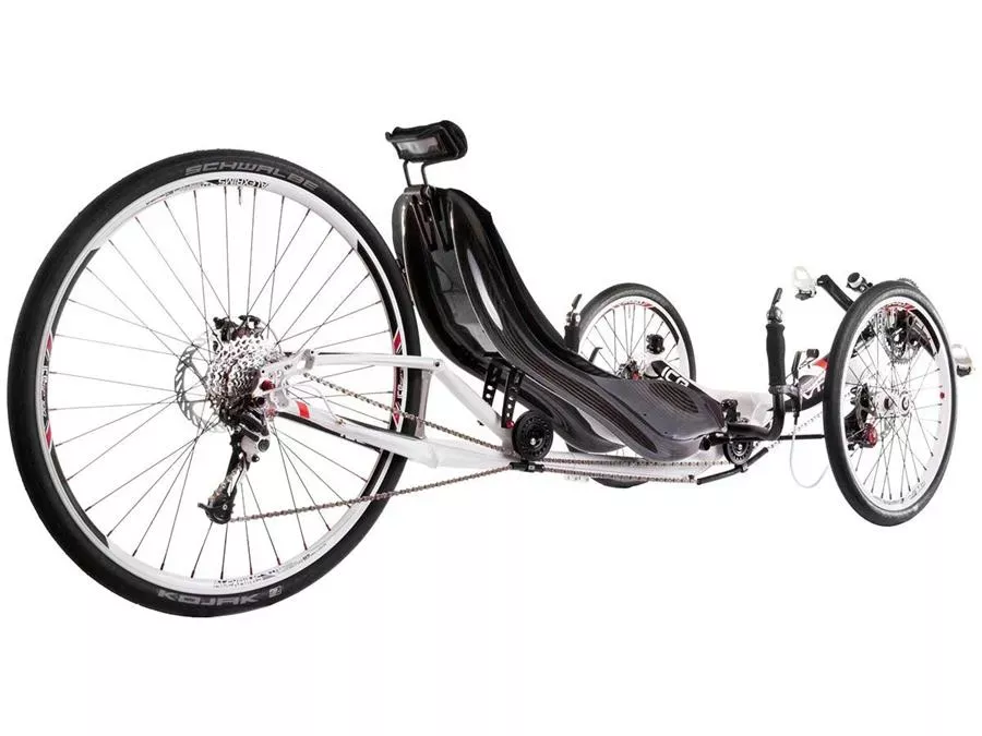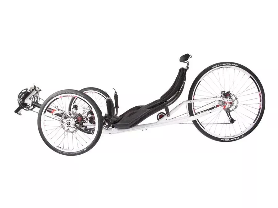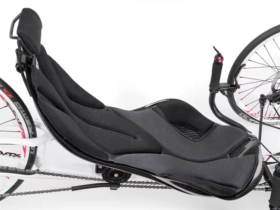 Neu ist die exquisite und superleichte SHIMANO Ultegra Ausstattung und der neue, verbesserte Schalensitz, mit der sich dieses Trike noch konsequenter zur ultimativen Rennmaschine entwickelt.